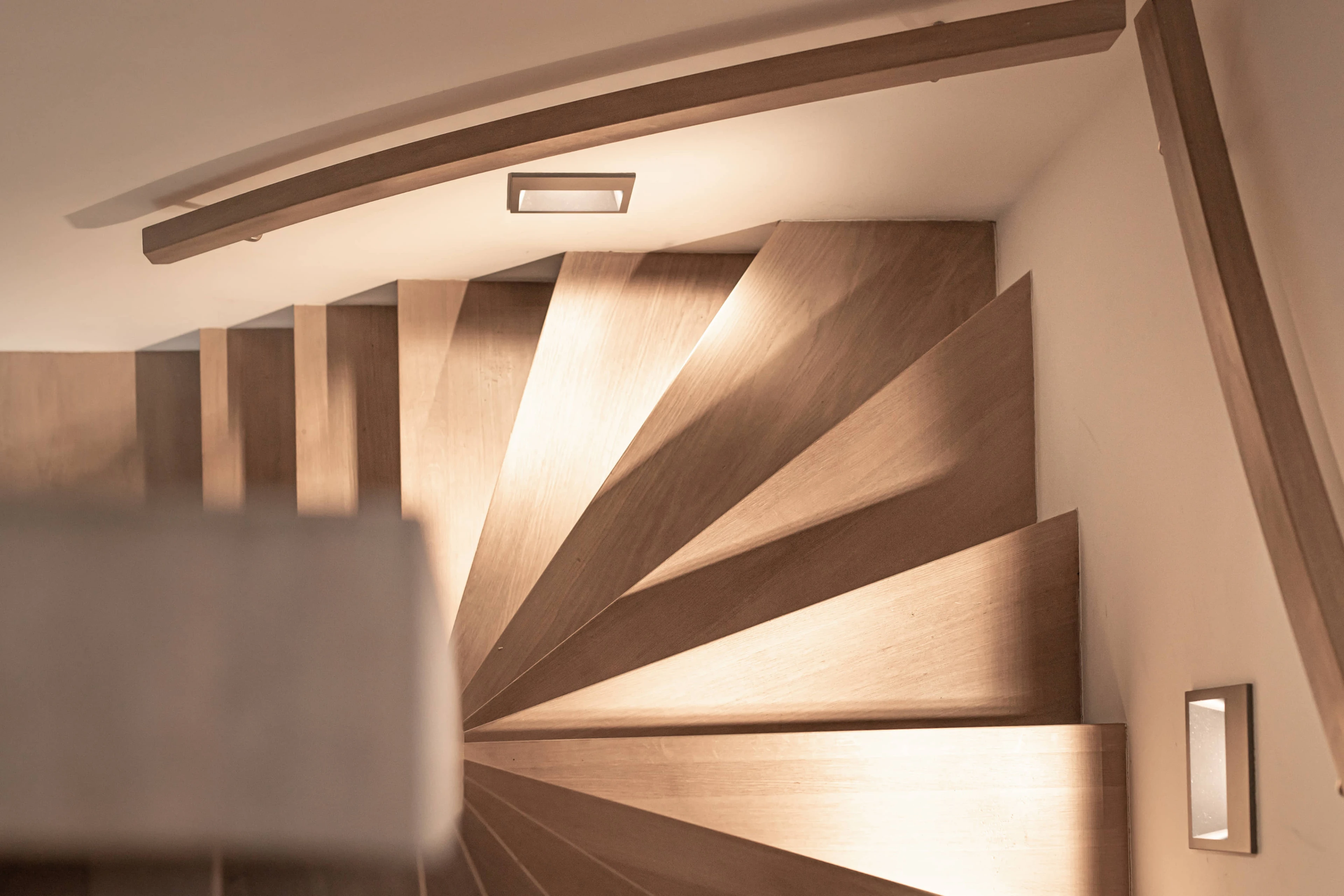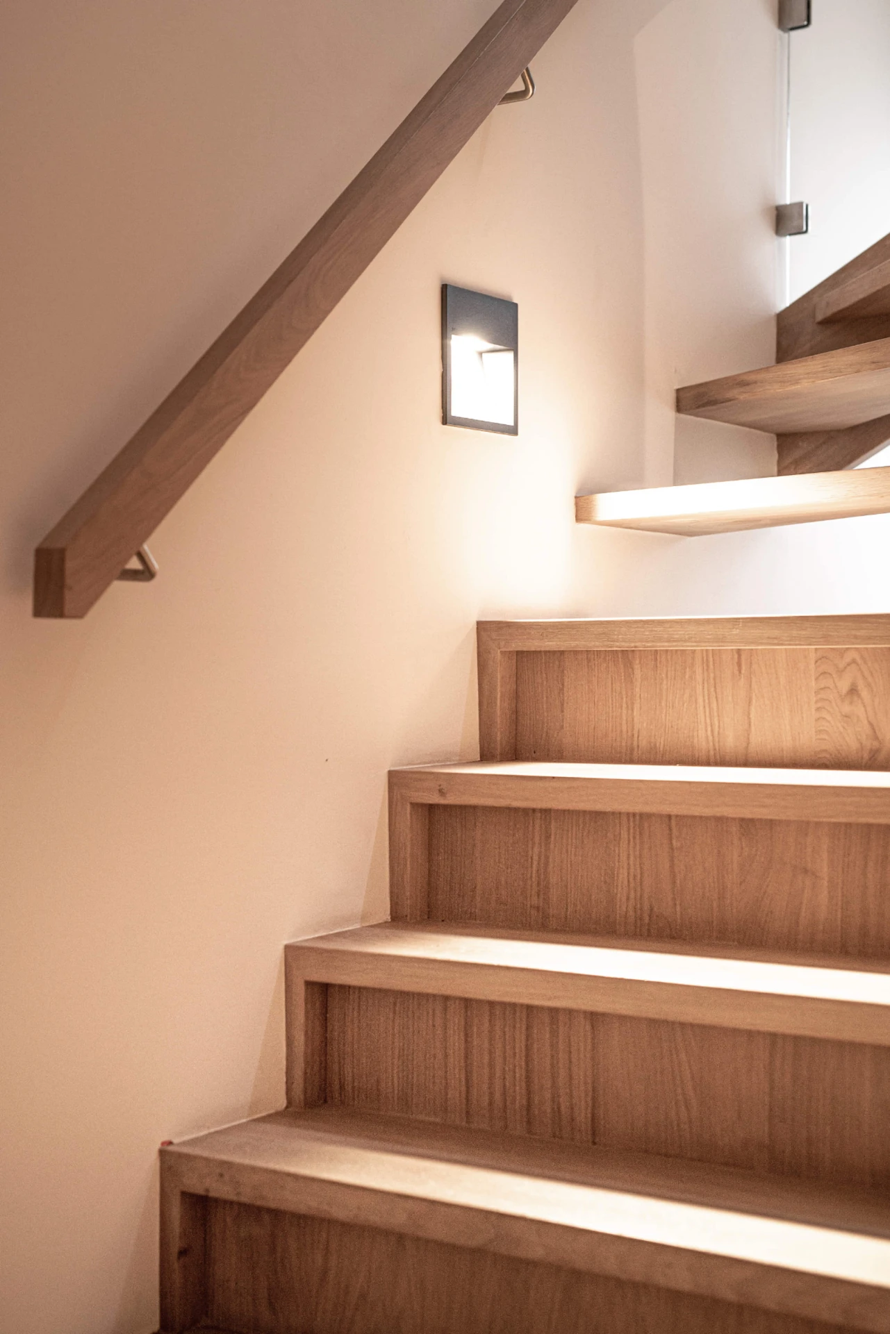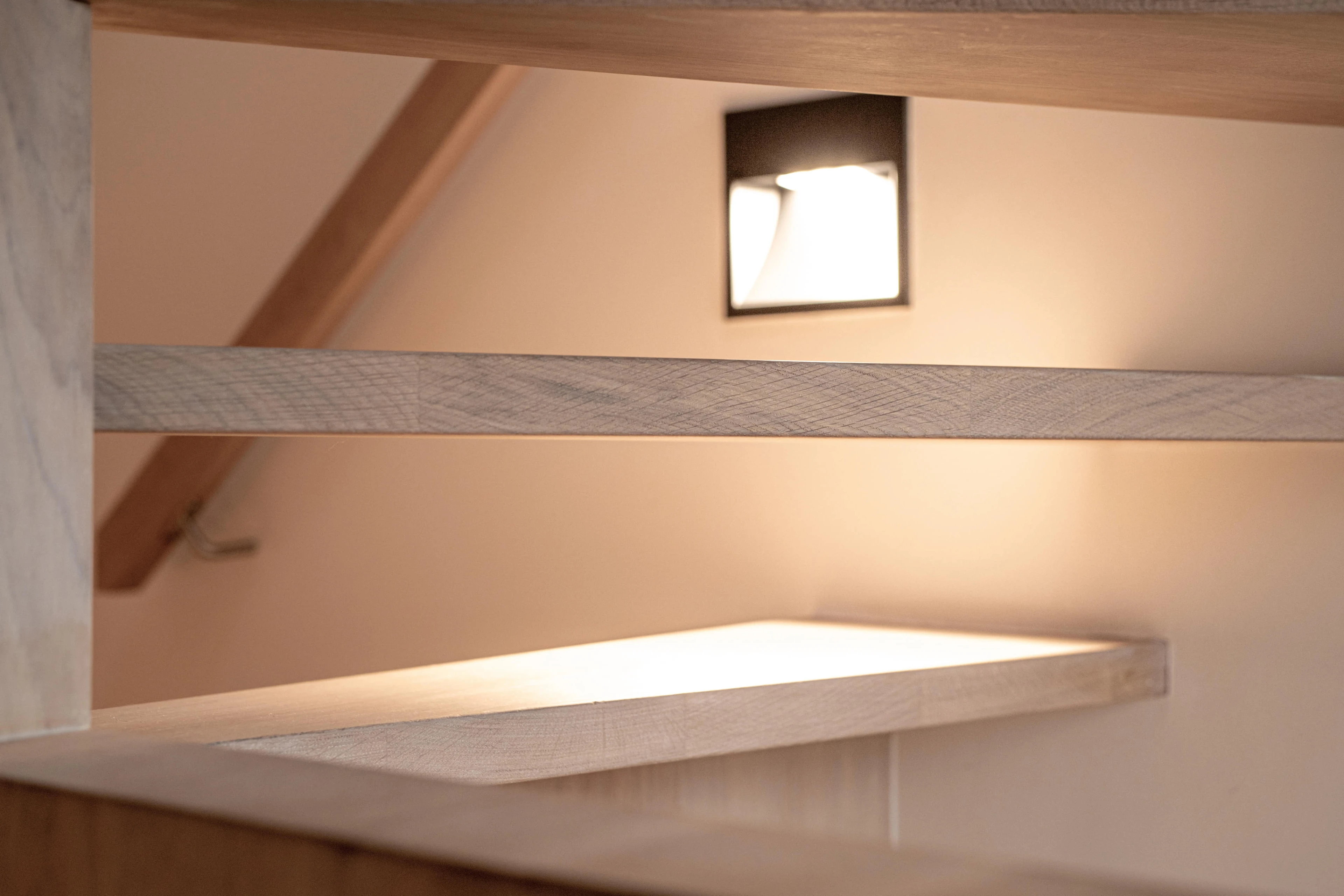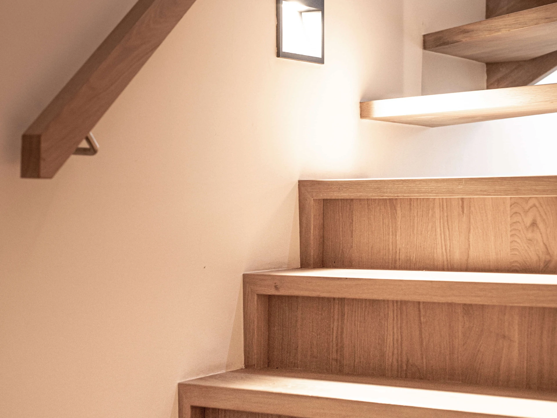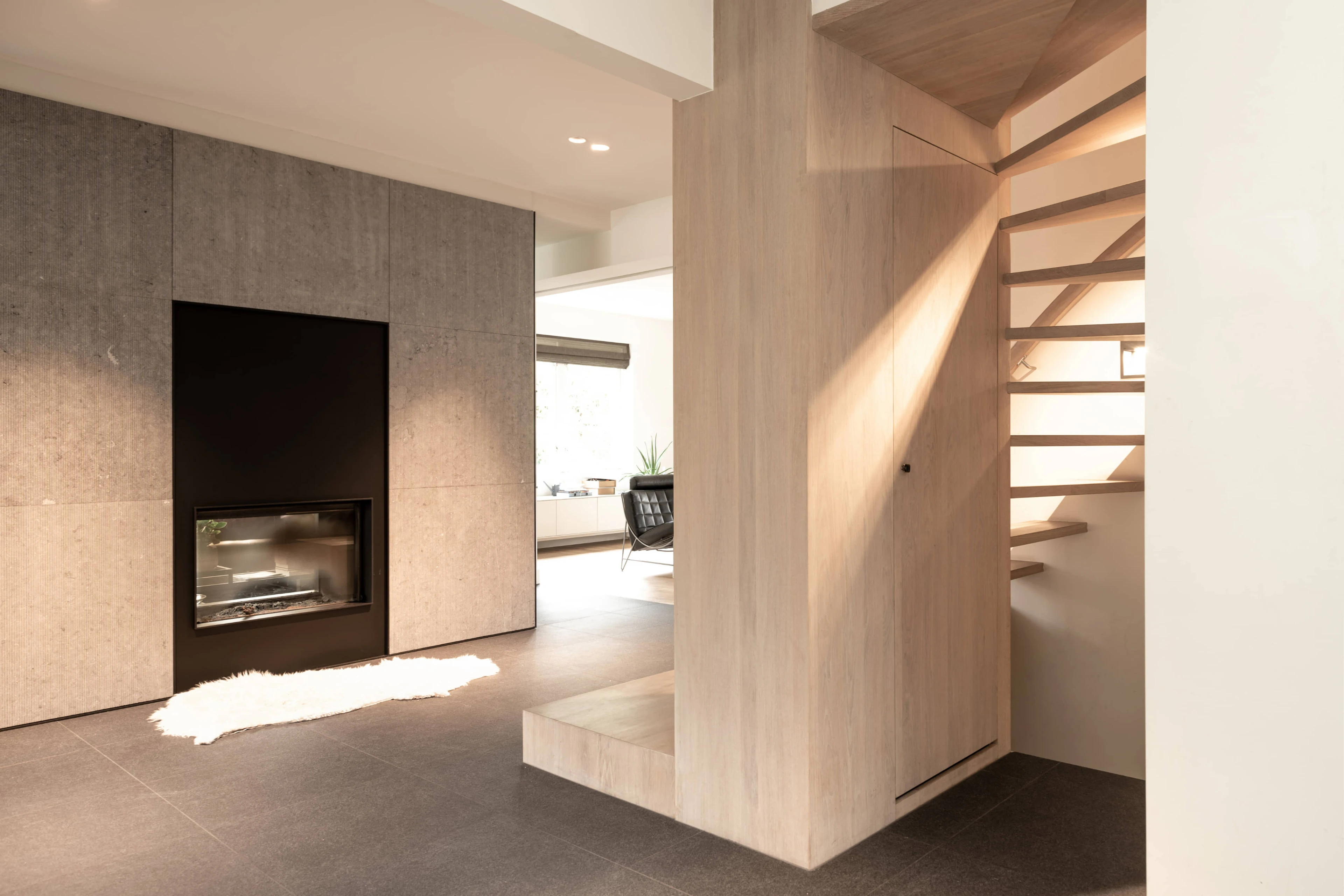 Open trap met geïntegreerde kastruimte in de onderste treden. Modern, warm en slim ontworpen.